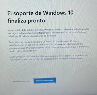 14 de Octubre 2025 - FINALIZA SOPORTE DE WINDOWS 10