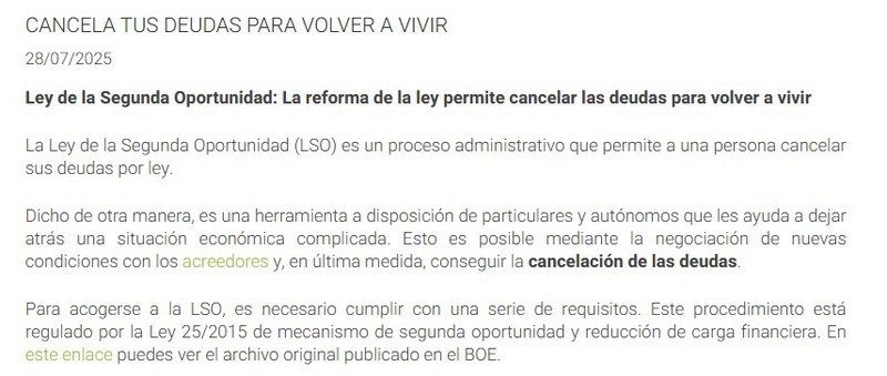 La Ley de Segunda Oportunidad es un mecanismo legal en España diseñado para que